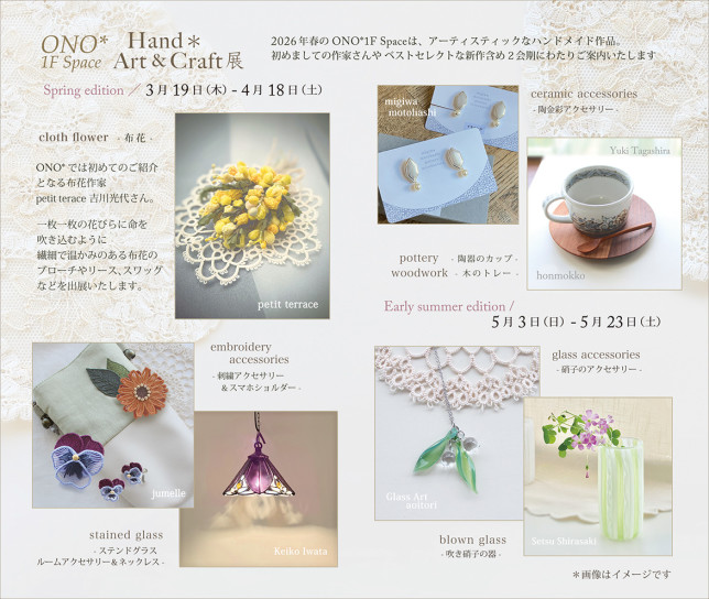 ONO*ゆかりの作家さんによる新作と、おすすめのセレクト作品をお披露目いたします