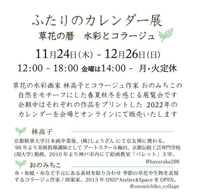 12:00 – 18:00 最終日は15:00まで